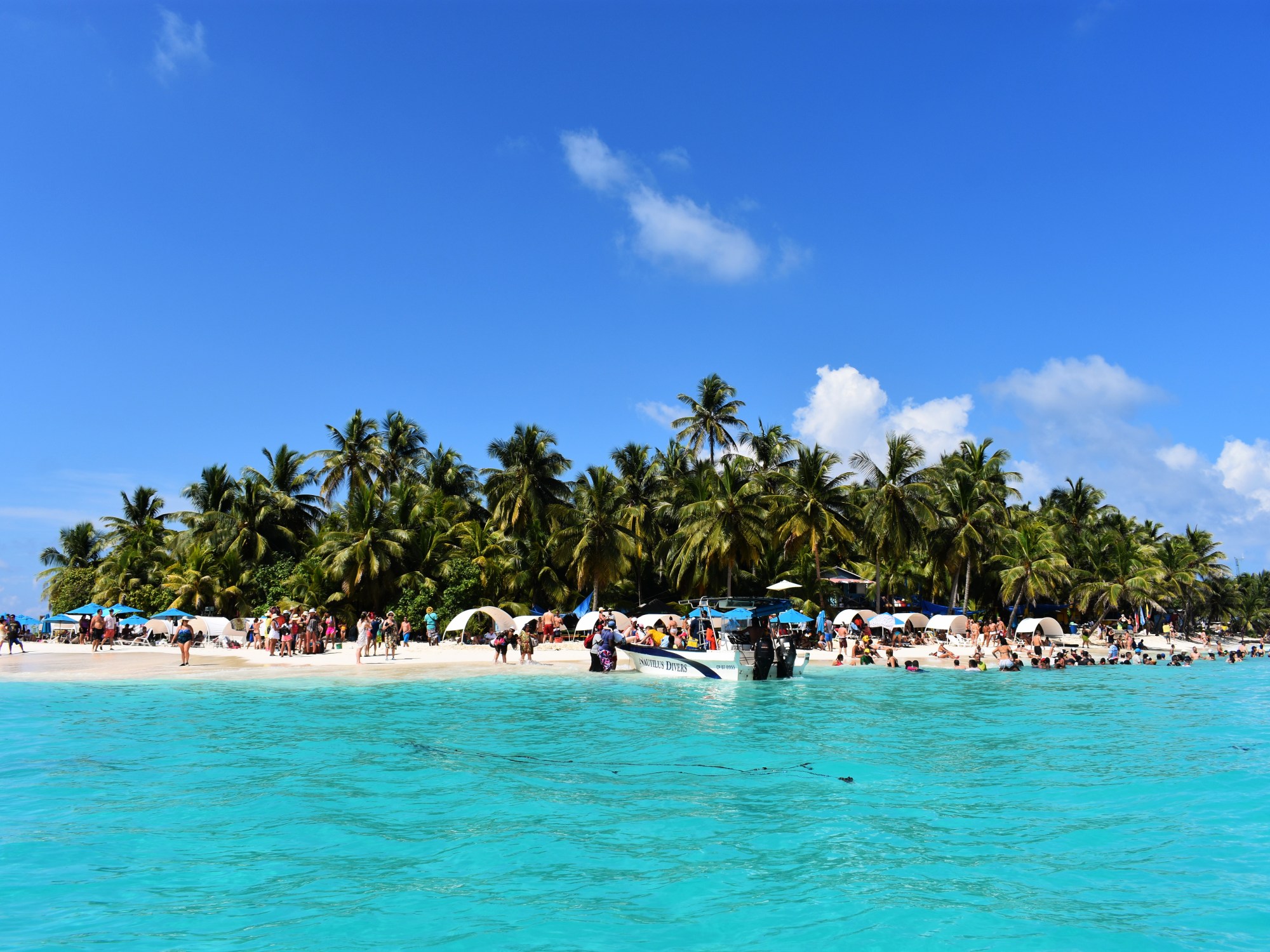 The island was an absolute picture of Caribbean bliss. Unfortunately, due to this every man and his dog had come to spend the day here. There were at least 500 people crammed onto an island no bigger than 100 meters across. I was quite glad to get in the water and swim out to some relative peace and quiet. Despite the overcrowding, the island trip was great. The water was incredibly clear and there are much worse things than lazing back in the sun next to a beach bar for the afternoon.
